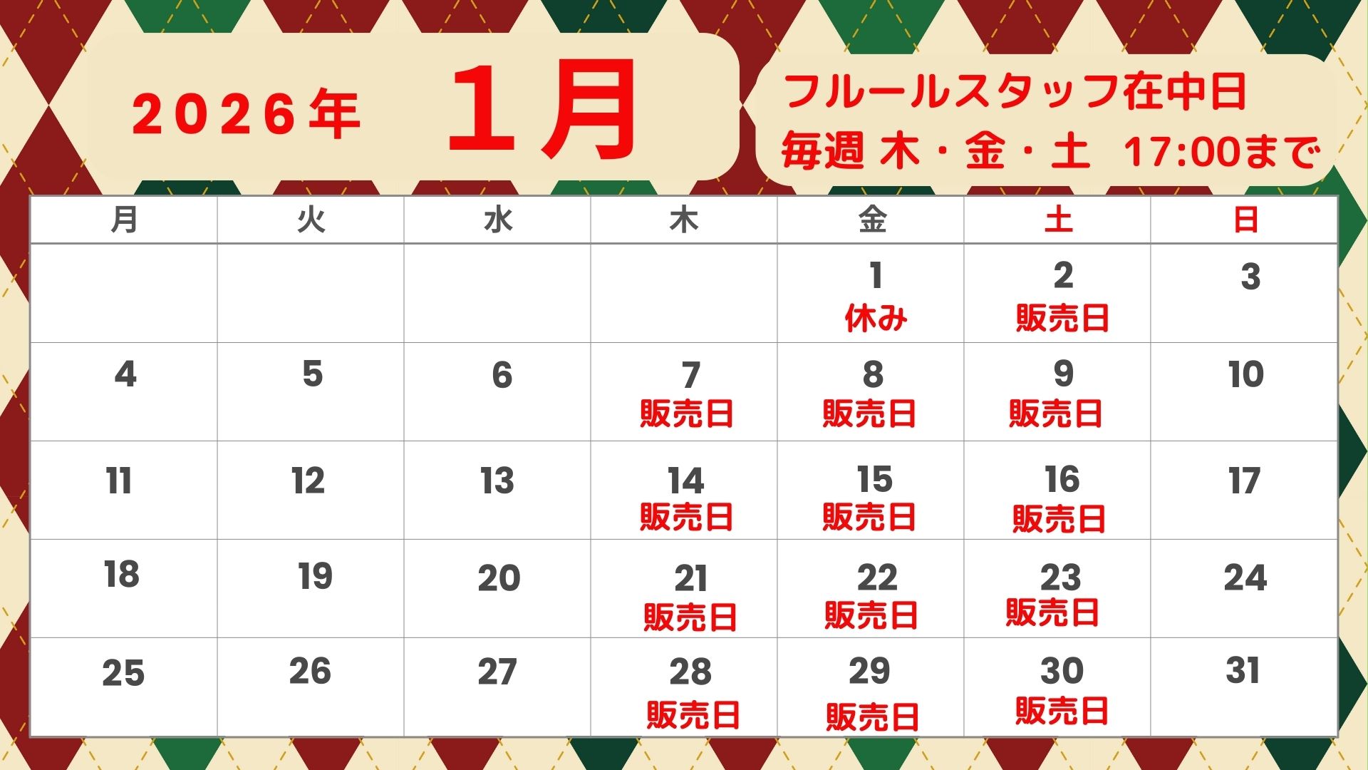 1月2月は雪により、急に休むことがありますのでご了承ください。