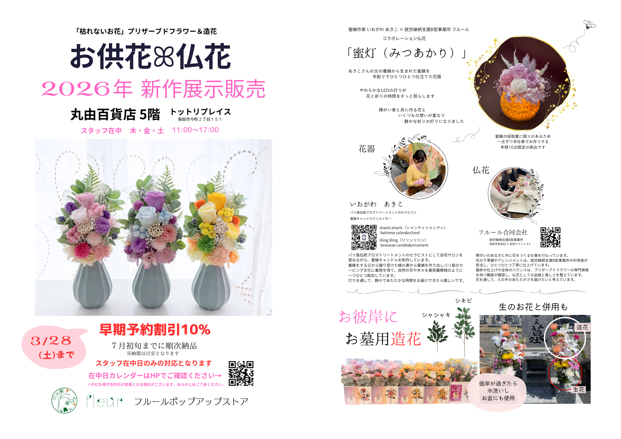 丸由百貨店5階トットリプレイスにて 2026年新商品仏花 展示販売